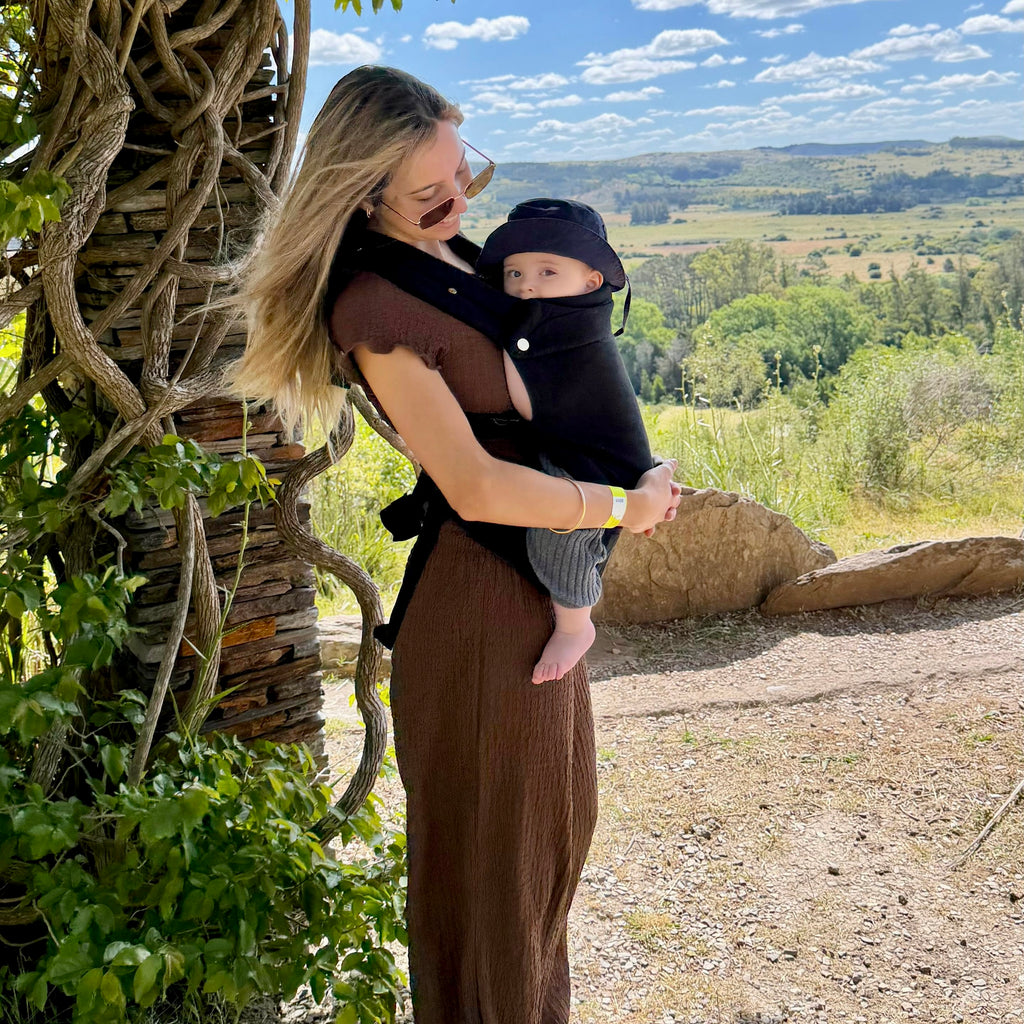 El porteo acompaña la transición de la exterogestación: pasar de 9 meses en la panza a sentirse seguro, contenido y cerca del latido y el calor de quien cuida.